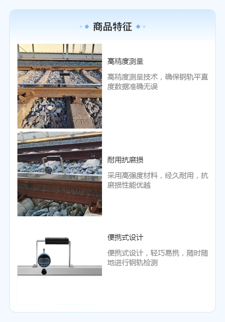 用途范围 | 测量铁路钢轨顶面和侧面的平直度,以确保钢轨的铺设质量和列车运行的平稳性与安全性 | ||