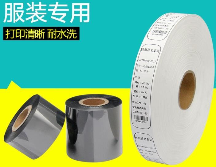 除了常见的蜡基碳带、混合基碳带和树脂基碳带之外,比较常用的还有水洗碳带。跟其他三种碳带相比,水洗碳带就只能用于水洗唛、水洗标签。服装吊牌之类的打印了。
