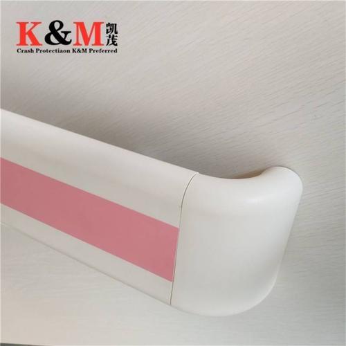 140防撞扶手由四个部分组成,其中面板采用 PVC(聚氯乙烯材)料生成,材料长度5米,厚度2.0MM,可定制颜色。底座和封口采用ABS合成树脂挤压生成。扶手内部采用铝合金材料,铝合金长度5米,有多种厚度可供选择。面板有一定的柔韧性,表面有防滑纹可以更好的抓握,面板具有抗氧化·抗菌·无异味的特点。铝材我们采用防冲击,抗压力结构设计,可以有效的起到防撞的作用。除了安全性的设计以外,铝材还有一个很人性的设计,就是铝材的一侧有一个半圆的凹槽,可以方便抓握。