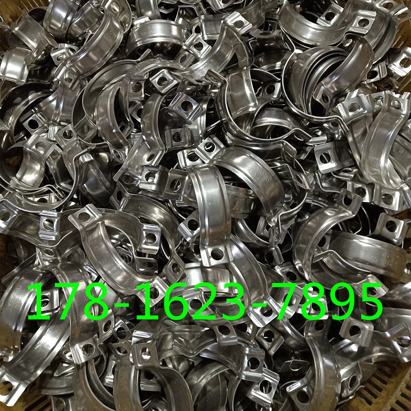 还有一种管支架也是由两个半圆组成,但是它只有一个一头跟螺栓一样用来支撑的它不需要垫圈所以就没有垫圈半圆下面用于支撑的钢管是实兴的上面车的外螺纹.