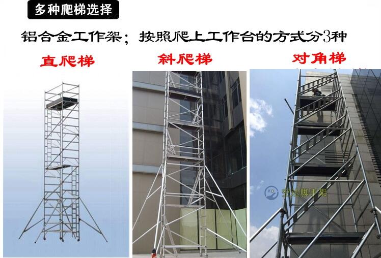 铝合金脚手架移动平台厂家经多次试验,得出具有防火防水和防滑的踏板及50公分间距台阶高度,能为爬升提供安全舒适的动力。可作为垂直通道的楼梯,加固脚手架设计原则体系中的部件易于组装,其数量少灵活。承载力高可达272kg,高可达42m,单、双宽铝合金脚架均可达到相同的承载力。
