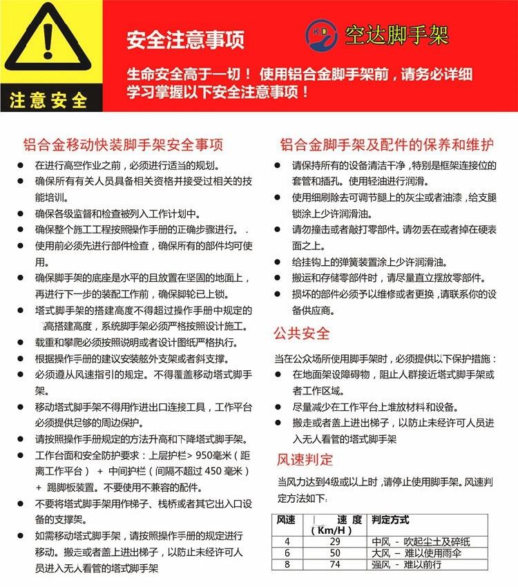 新型铝合金脚手架的安全性能主要体现在以下方面: