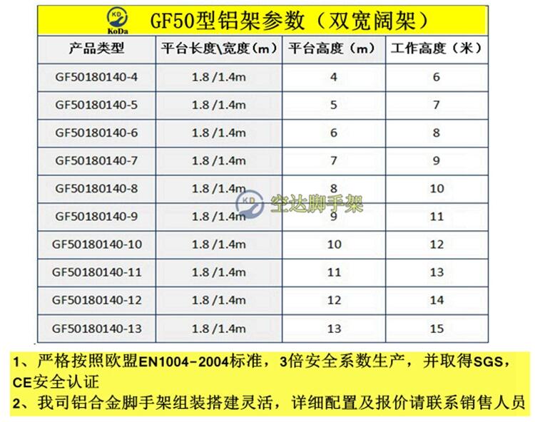 空达双宽垂直爬梯式铝合金脚手架是目前使用较广泛的铝合金脚手架,垂直爬梯设计,既能解决上下铝合金脚手架爬梯的问题,同时又能让搭建拆卸脚手架变得简单轻松,平台板可以搭设在框架上的任意阶段,更方便了需要经常变动作业高度的施工需要。双宽度垂直爬梯式铝合金脚手架既能节省了斜爬梯的制造成本,又解决了上下铝合金脚手架的问题是更具性价比的一款产品。