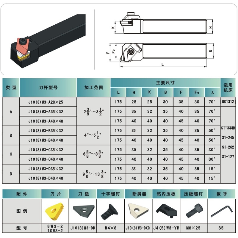 石油管螺纹刀具三角形刀片系列外螺纹用刀杆J10(8)W3-A28×25