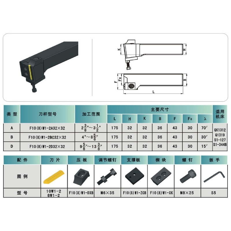 石油管螺纹刀具长条形二齿螺纹刀片用外刀杆F10(8)W1-2BC32×32
