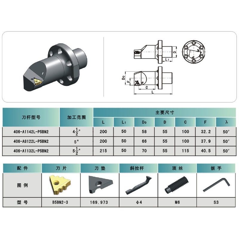 石油管螺纹刀具406平装偏梯扣梳刀杆406-A1132L-P5BN2