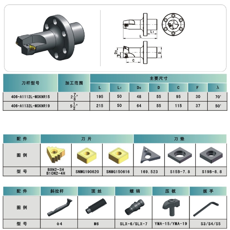 石油管螺纹刀具406复合刀杆406-A1112L-MSKNR15