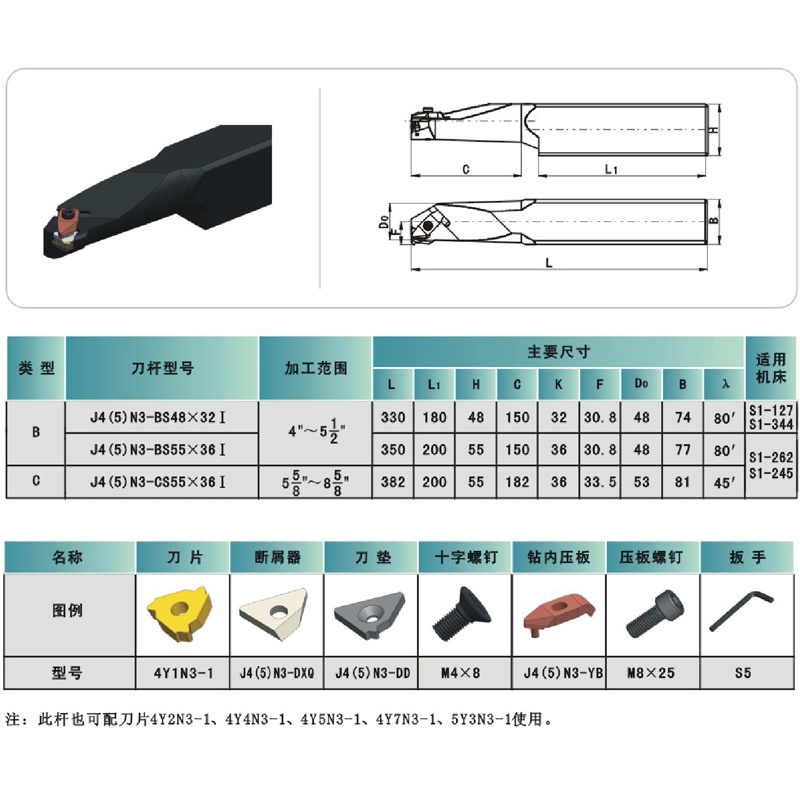 石油管螺纹刀具钻杆Ⅰ型内螺纹刀片用方柄刀杆J4(5)N3-BS55×36Ⅰ
