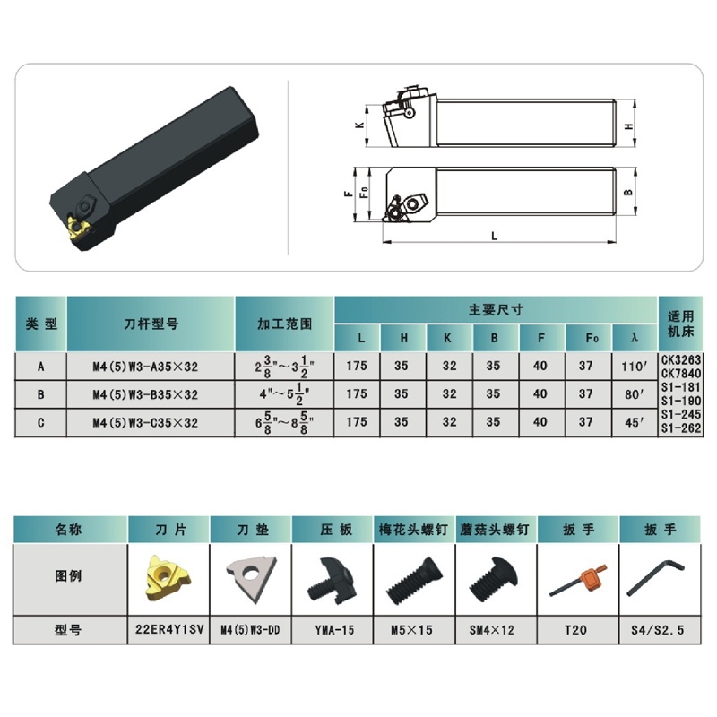 石油管螺纹刀具钻杆Ⅱ型外螺纹刀片用刀杆M4(5)W3-C35×32
