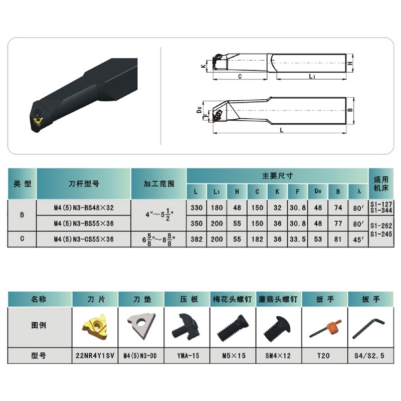 石油管螺纹刀具钻杆Ⅱ型内螺纹刀片用方柄刀杆M4(5)N3-CS55×36