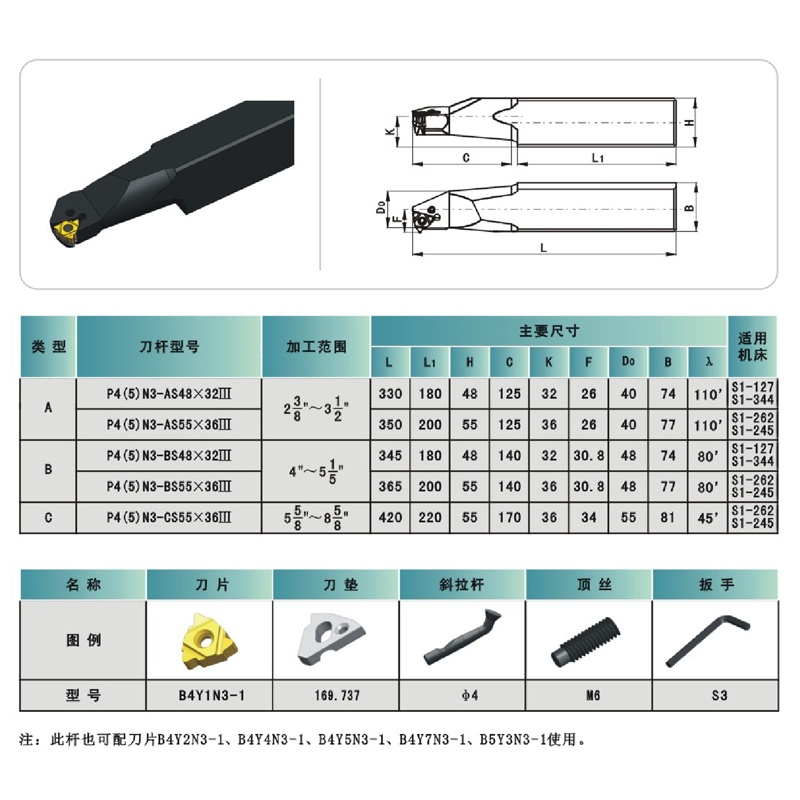 石油管螺纹刀具钻杆Ⅲ型内螺纹刀片用方柄刀杆P4(5)N3-AS55×36Ⅲ