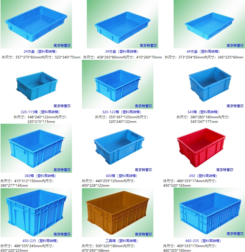 塑料周转箱是由全新聚乙烯一次注塑而成。根据常规的需要针对采用的塑料周转箱配置的塑料盖子。 塑料周转箱是物流容器,塑料周转箱应用于食品、超市等行业,能、,,且具有便捷、堆放整齐、便于管理等特点。其合理的设计、优良的品质,适用于超市物流 中的配送、储存、流通加工等各个环节。在物流管理越来越被广大企业重视的今天,塑料周转箱可以帮你完成物流容器的通用化、一体化管理,是你进行现代化物流管理产品之一。 塑料周转箱常规颜色为蓝色。 可以根据客户的要求定做为:红色、绿色、灰色。 也可以根据需要将制定的塑料周转箱定做为防静电产品。广汉物流周转箱_福州塑料周转箱经销-南京特蕾莎