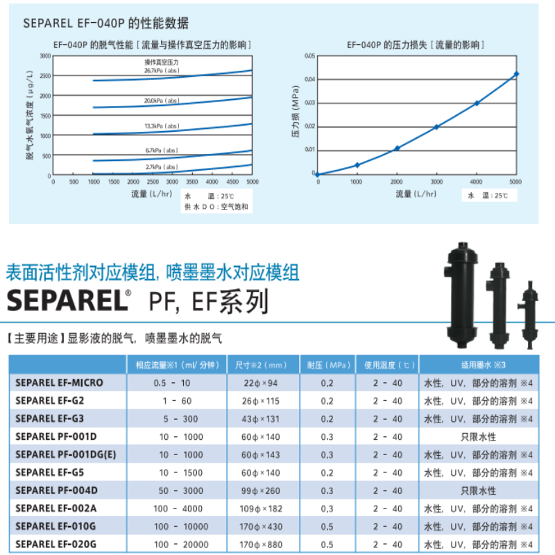 由于DIC中空纤维膜不透过液体,只透过气体,适合进行喷墨的脱气。此外我们开发的小型化、低压力损失产品可装载于喷墨式打印机。