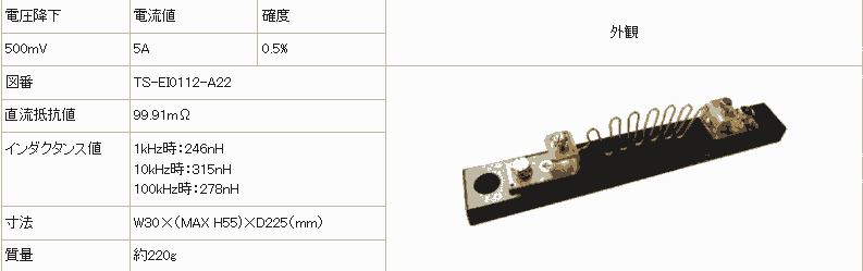 下表の大電流分流器では、強制空冷等をお勧めします。