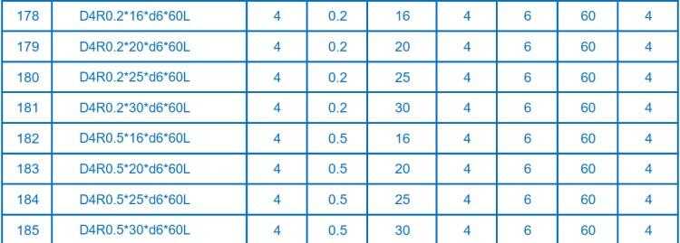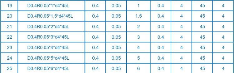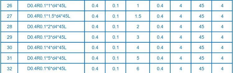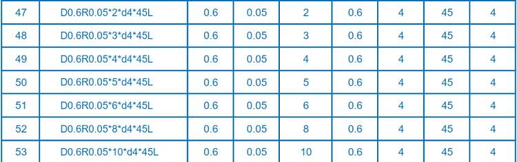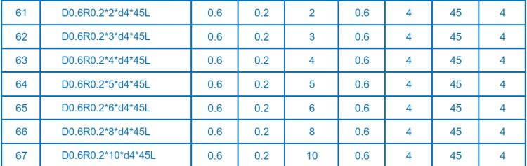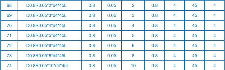 - 适用于S136、SKD11、SKD61、DC53、440C、D2、Cr12MoV、H13、42CrMoA、ASP30等材料淬火后(<HRC55)的半精加工、精加工。