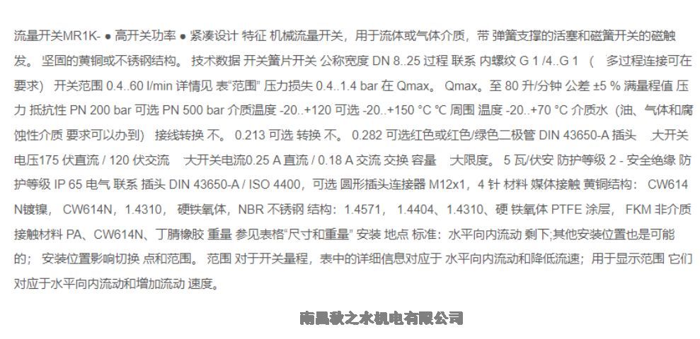 HONSBERG豪斯派克流量开关VM-025 GR 060 IP44