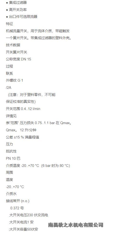 HONSBERG豪斯派克流量开关VM-025 GR 060 IP44