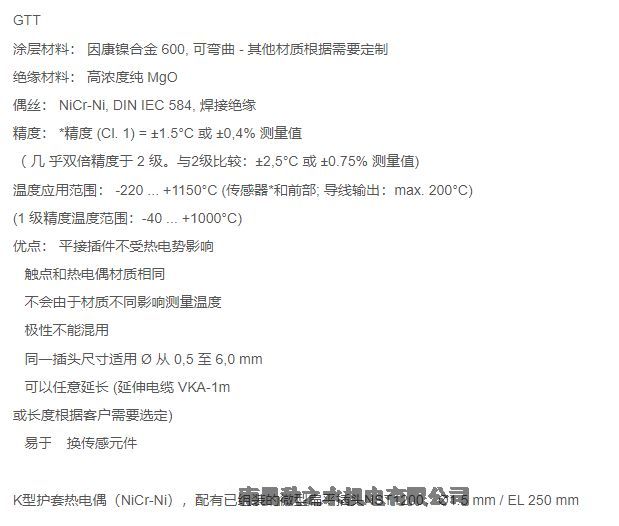 德国格瑞星Greisinger涂层热电偶丝温度传感器探头GTT