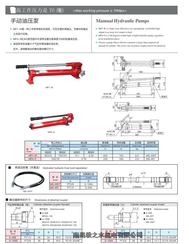 Masada日本マサダ製作所千斤顶手動油圧ポンプMP4-S现货代理