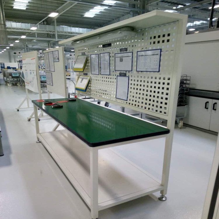 工作台材质:材质采用优质冷扎钢板,通过的自动化静电喷涂工艺进行表面处理;工作台根据用户要求,工作台桌面可选择特殊成型高分子纤维板等不同材质、不同厚度的基材。基本桌面可选择:高分子复合桌面、防火板桌面、不锈钢包面、铁板合成面、榉木桌面、橡木层压板左面、防静电桌面、电木板帖面等; 工作台上可配照明架、吊架、搁板、方孔挂板、百叶挂板、动力电源插座、电器盒、零件盒挂条等,满足用户不同的需求。