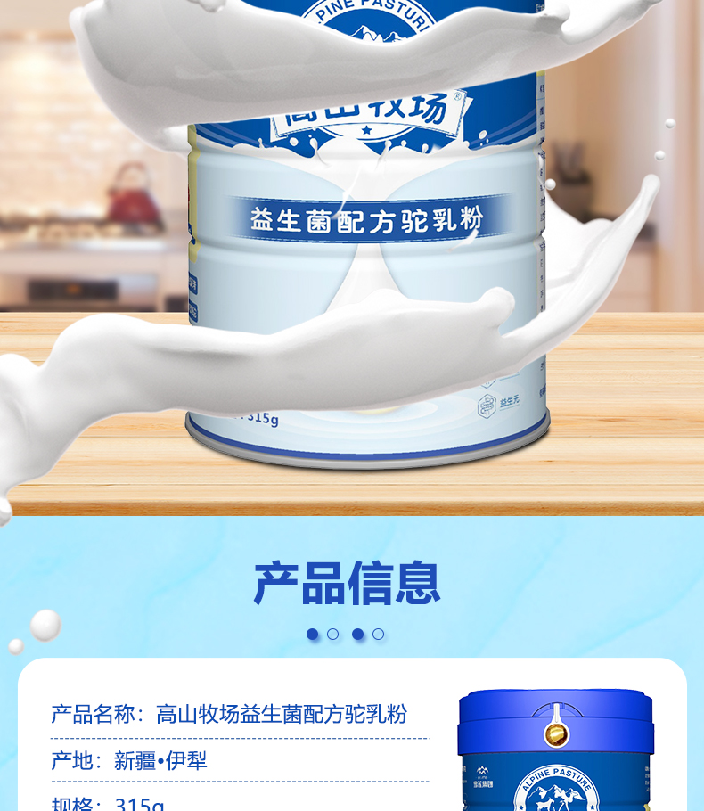 高山牧场儿童老年可用益生菌配方驼奶粉315g/罐 一件代发雪莲乳业 保质期 | 24个月 | ||