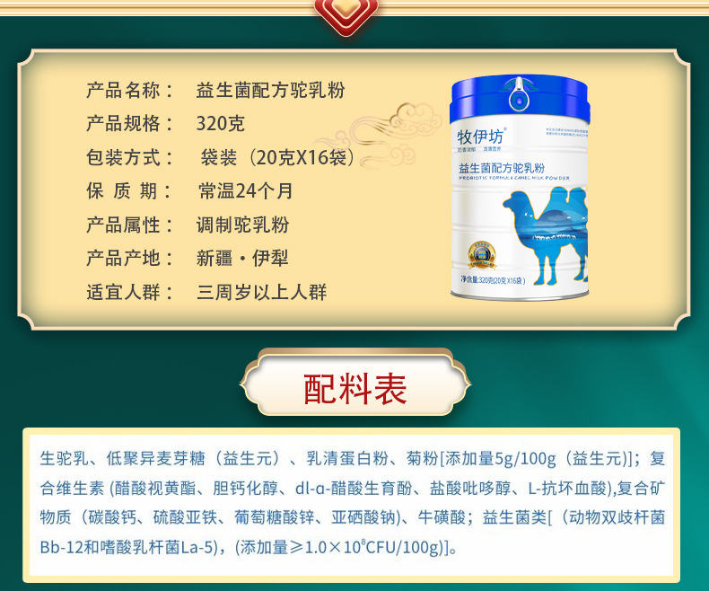 产品属性 | 配方驼奶粉 | ||