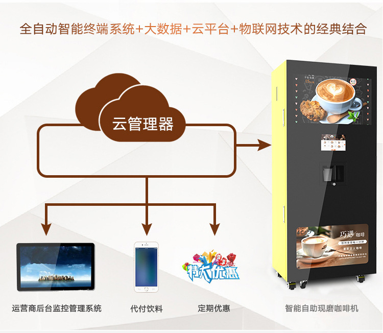 俊客商用现磨无人咖啡机扫码支付奶茶售卖机可放加油站服务区等