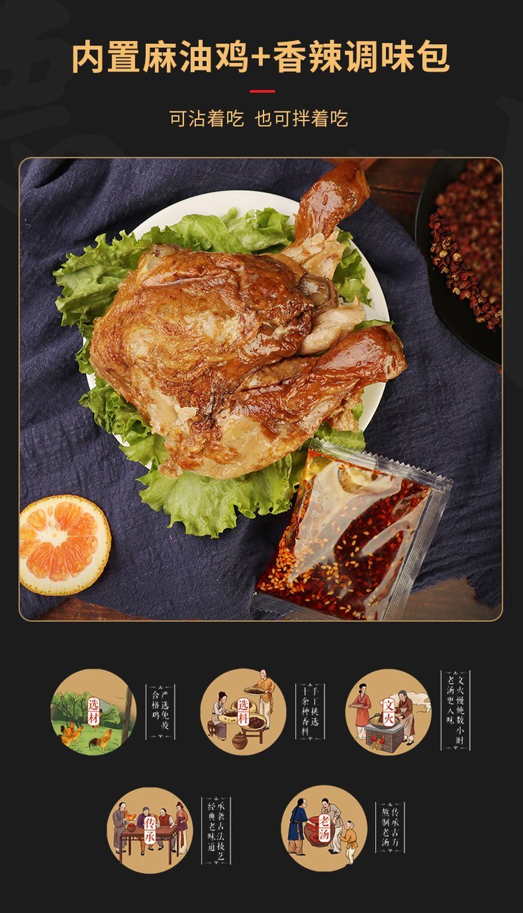 把菠菜切段后用碗把酱油、醋、糖、盐、淀粉、味精、葱、蒜、料酒及什件、菠菜、木耳调成汁。用碗把酱油、醋、糖、盐、淀粉、味精、葱、蒜、料酒及什件、菠菜、木耳调成汁,然后把这些汤汁浇在鸡上这样一盘美味地麻油鸡就完成了。