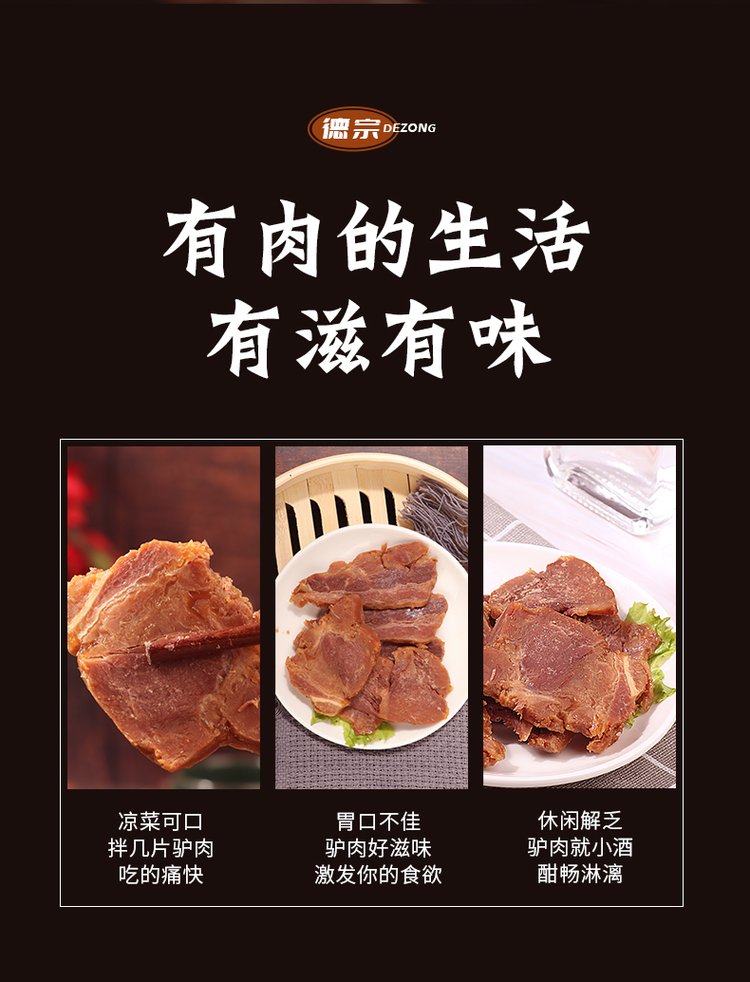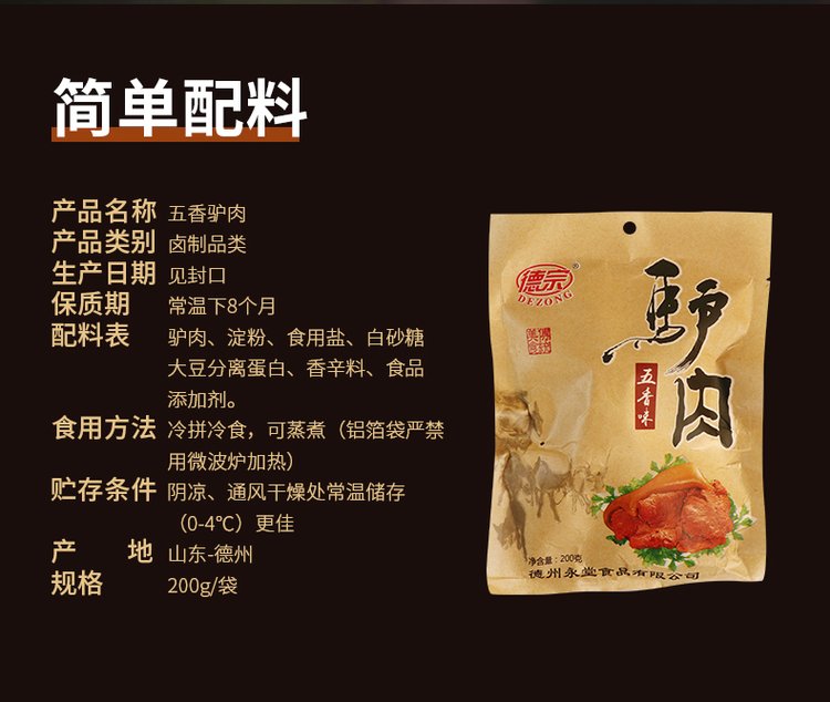 配料表 | 驴肉、淀粉、食用盐、白砂糖、大豆分离蛋白、香辛料、食品添加剂 | ||