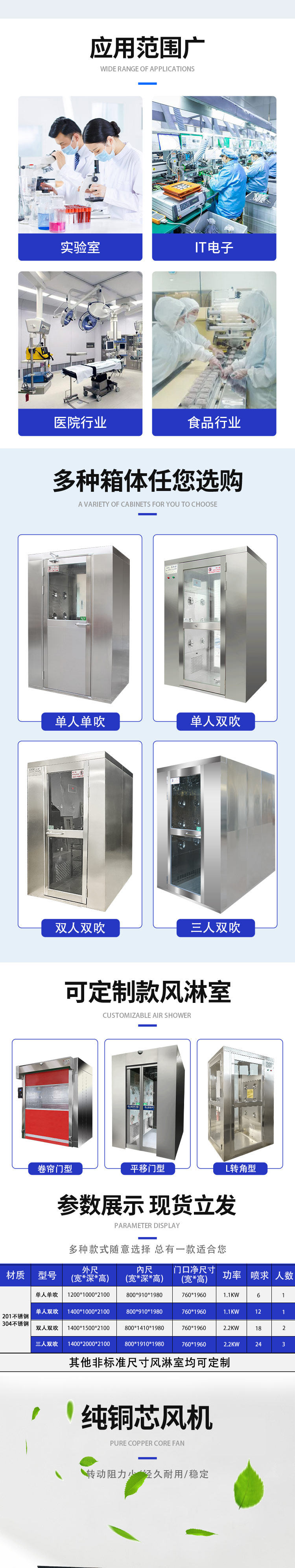 单人不锈钢钣金风淋室自动感应门食品车间风淋通道正康机械
