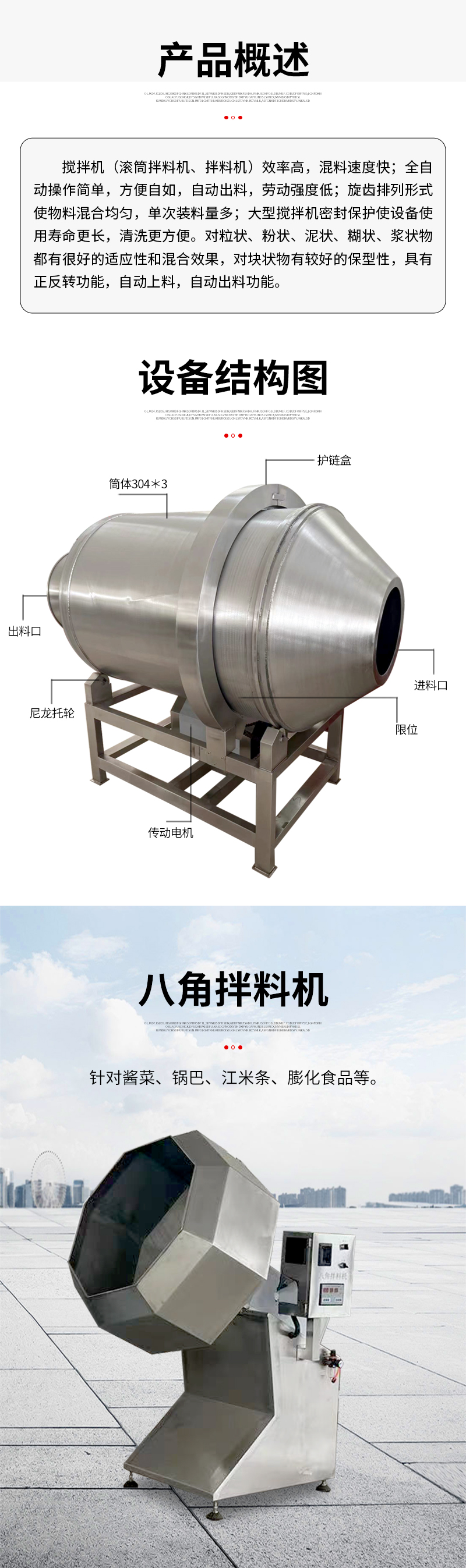 多功能食品滚筒拌料机酱菜调料搅拌机连续式自动进出料拌料设备