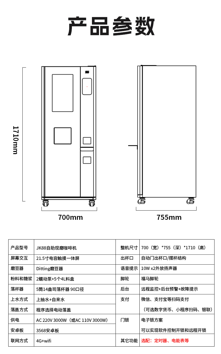 商品种类 | 无人自助咖啡贩卖机 | ||