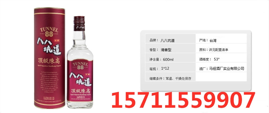 台湾八八坑道陈高53度600ml 马祖酒厂八八坑道53度窖藏陈高