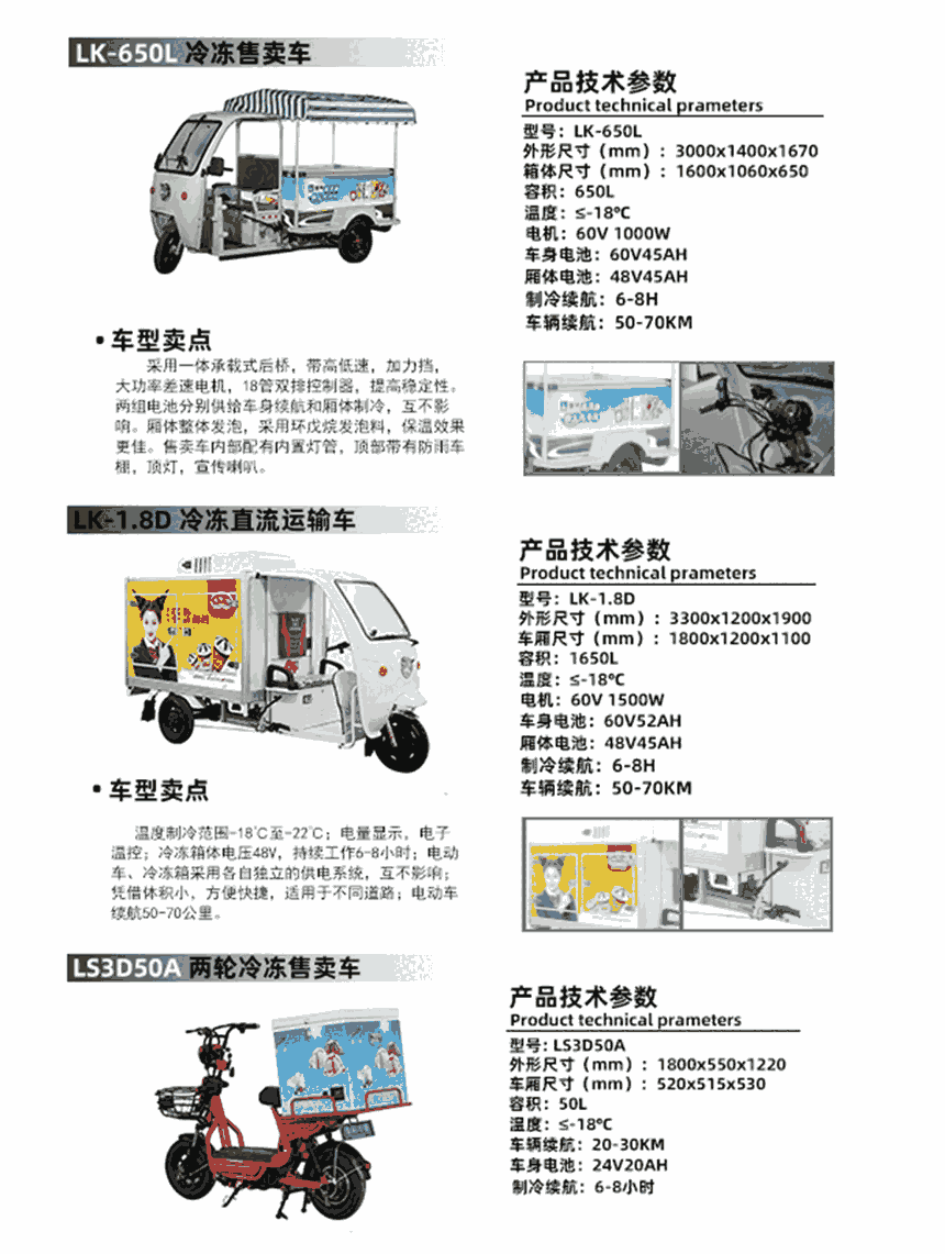 2.电动车和冷藏厢、冷冻厢能分开独立充电,各自不相互影响,冷藏厢、冷冻厢一次充电能满足6-8小时工作需求。