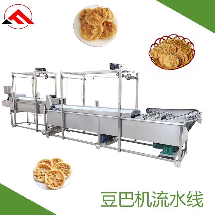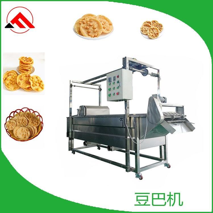 豆巴机流水线中的豆巴机技术完善,性能稳定,在市场上的应用效果非常突出,该豆巴机的自动化程度高,可实现自动注糊、自动油炸成型、自动出料,整个生产过程简单方便,省时省力。