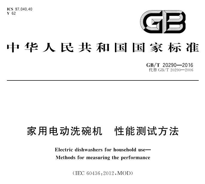 Electric dishwashers for household use —— Methods for measuring the performance