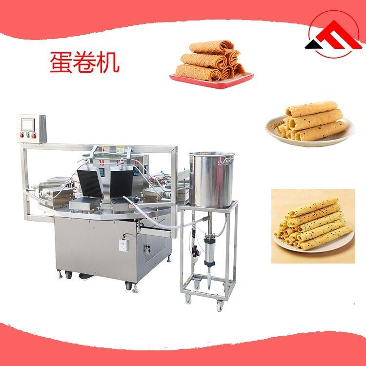 蛋卷机加热板压力的大小、注料量、加热时间、温度都可进行调节,满足不同工艺的加工要求,同时加热板的大小、花纹可进行定制,能够实现不同规格的产品加工需求。该设备的效率高、产量大,加热板的组数有八组、十组、十二组等多种不同组数,不同的组数,产量不同,用户可根据自己的实际需求进行选择。