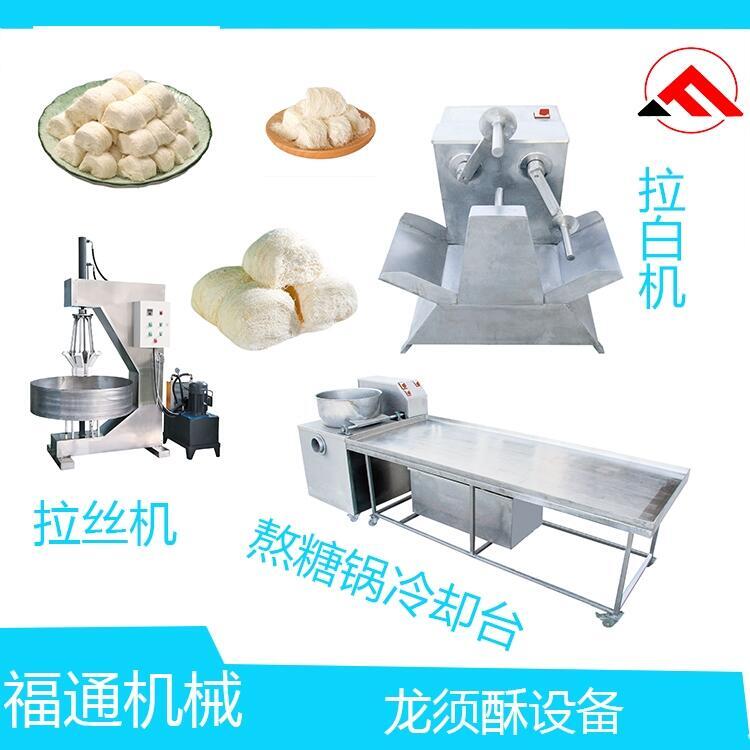 龙须酥拉丝机和拉白机、熬糖锅冷却台一起组成龙须酥设备,实现龙须酥的季下滑生产加工,从龙酥须从熬糖、拉白、到拉丝的生产加工,全程都可使用机械设备来加工,不仅效率高,产量大,还大大减少了人工的投入,省时又省力。