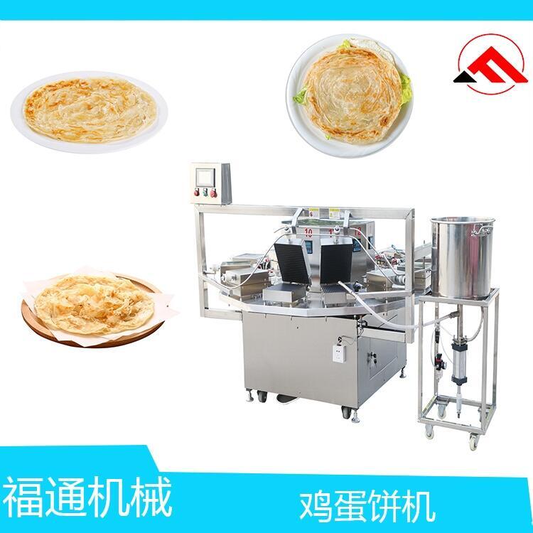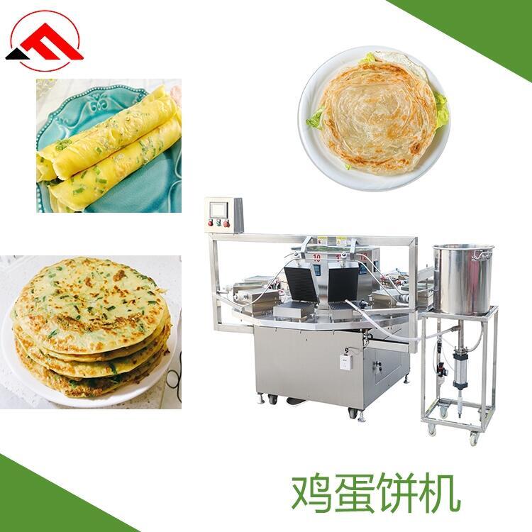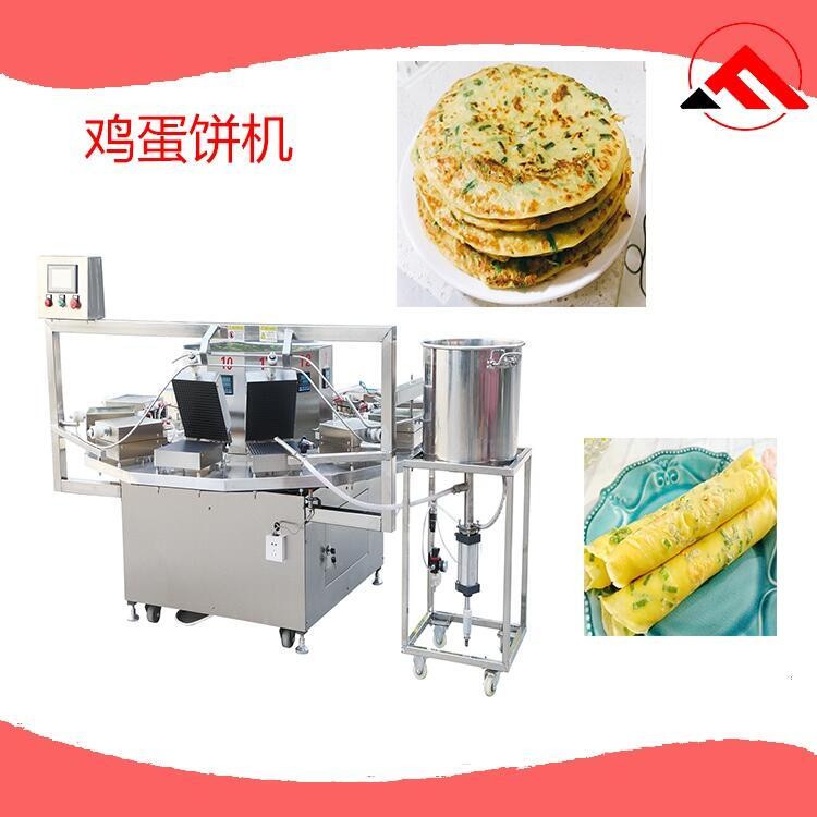鸡蛋饼机是一种新型设备,该设备的技术完善,性能稳定,在鸡蛋饼机的生产加工中效果突出,是鸡蛋饼等薄饼生产加工的主要设备,该设备的自动化程度高,在鸡蛋饼的生产加工中可实现自动注料、自动压盖、自动起模,整个生产过程简单方便,省时省力,该设备加工的鸡蛋饼颜色跟均匀,口感更佳。