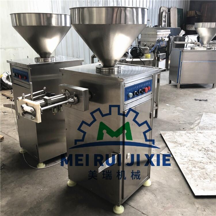 设备采用304质不锈钢材质,符合食品安全要求,便于清洗。小型灌肠生产线设备整体结构合理、造型美观。采用活塞式液压驱动,适用物料范围较广,尤其对较干的料馅相对其他灌肠机效率更佳,调准工作压力后在液压缸的作用下,使筒内的物料产生压力后将料挤出。