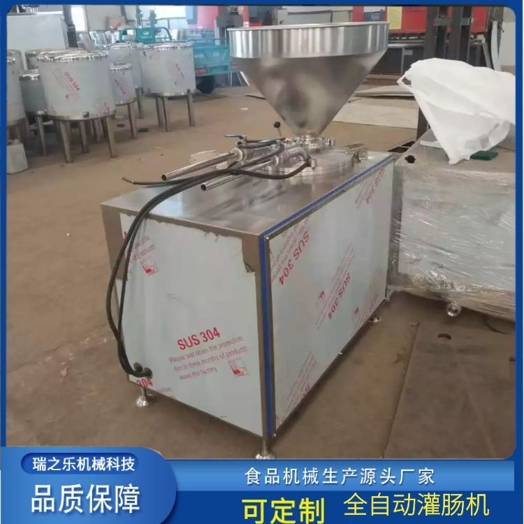灌制好吃的香肠要用到灌肠机、我公司生产的灌肠机有:液压灌肠机、定量扭结灌肠机、真空灌肠机、液压灌肠机是加工肠类制品的设备。全自动动糯米肠机能灌制大、中、小各种规格的肠制品、出厂时配置不同直径的灌肠杆。客户使用起来方便。也可以根据客户要求定制不同规格的直径灌肠杆。汽动定量灌肠机是利用气泵带动液压缸把料顶置上来。通过灌肠杆自动定量、自动打结、操作简单省时省力。容量大灌肠机该产品外形美观、做工精良、操作方便、使用安全可靠。该机的料斗、阀门、灌肠管及整机外包装均采用不锈钢制造。符合食品卫生要求。