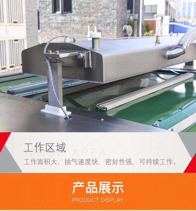 6.功能:连续滚动式真空包装机是我公司新研制的一款节能型真空包装机。该机采用凸轮分度器传动,以凸轮分度器代替了传统的电机,设备操作人员无须手动调整传送带位置,更省时省力;这种传动方式是传统的连杆传动方式不可比的。气动连续滚动真空包装机取代了电机,节省了电能,操作后台不用进行特殊保护,不用担心电机被烧毁,无污染,绿色环保更节能。整机可倾斜四种角度,可满足各种包装要求。