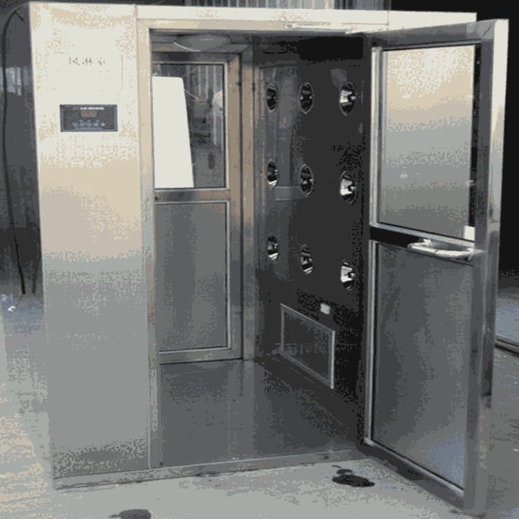 造,风淋室表面采用静电喷塑,其特点是美观,现代;其内壁,门还可以用不锈钢制作,其效果现豪华。全不锈钢制造,门为感应自动移门,操作系统采用智能程序 PLC 控制