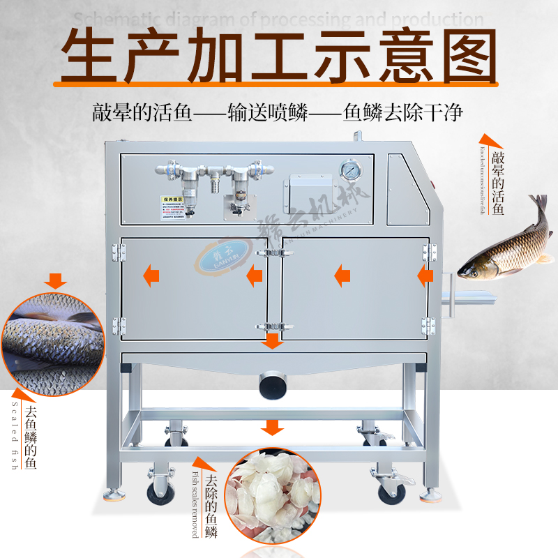 高压去鳞机通过水压方式去除多种鱼类鱼鳞,去鱼鳞干净、不伤鱼皮和鱼鳍