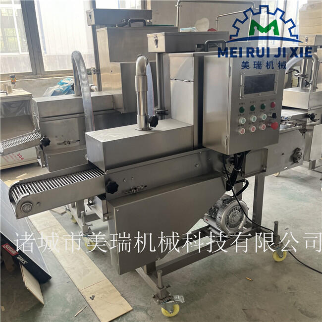 天妇罗虾上浆机 滚筒上粉机 茄盒上浆裹粉油炸机我公司生产的裹雪花片机内部设计复杂,使得产品形态饱满,深受客户满意!还装有一套自我调节配重的压辊,即使进行速冻之后还是牢牢的裹涂在产品表面,即可以使得产品表面裹的雪花片不会发生掉落的现象,裹雪花片以及面包糠,还会上一些面包屑,从而实现粉、浆、粉、浆、粉及浆、粉、浆、粉工艺。这样可以一机多用,减少客户的投资成本。可以同上浆机、上面包屑机连接,组成不同产品的生产线,而且不会容易发生变形,这个压辊的作用就仿造手工纂的工艺,