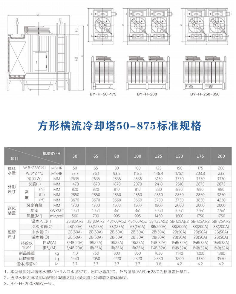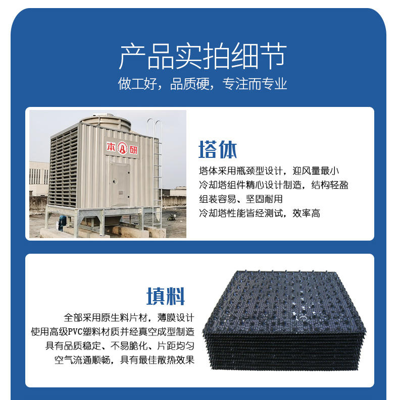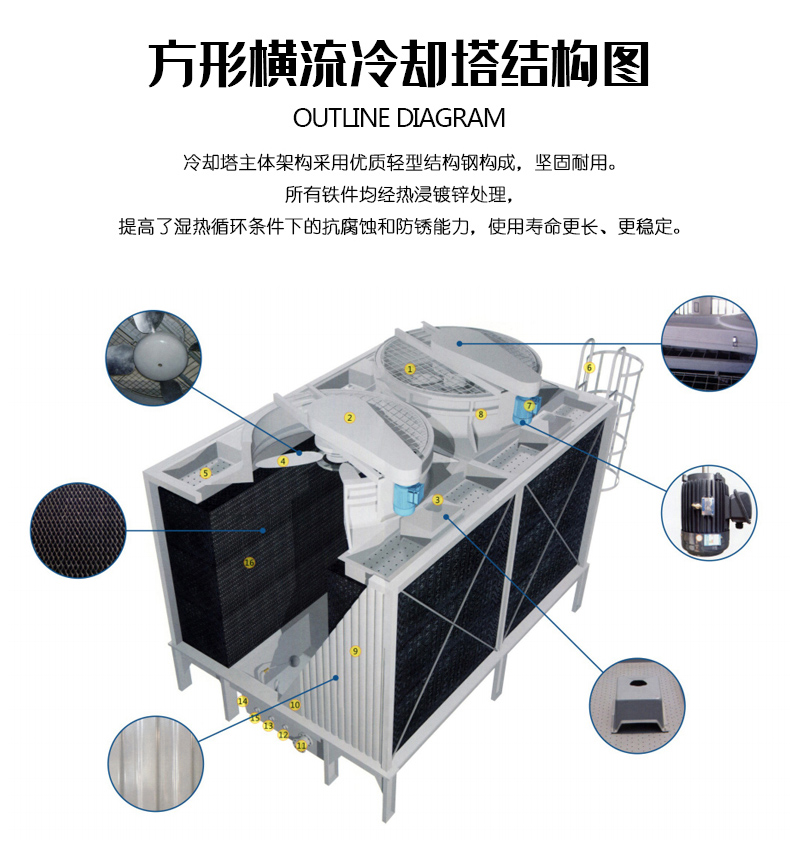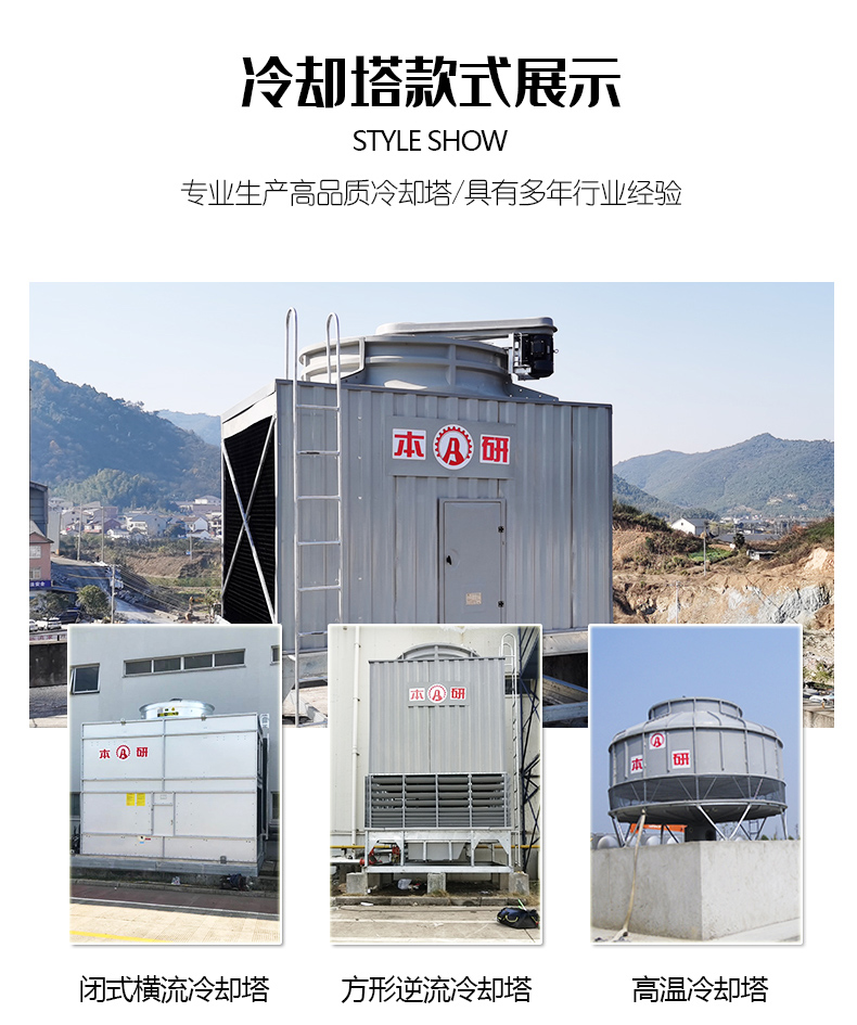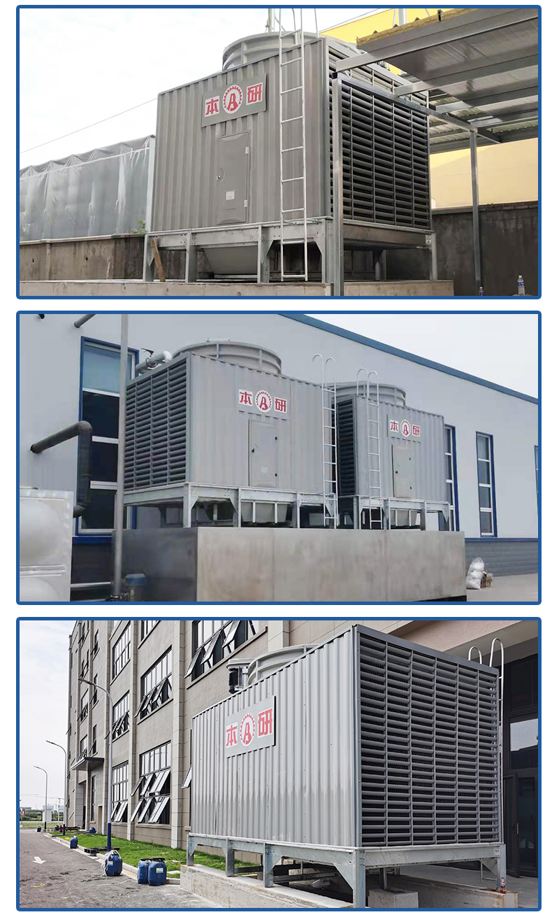 本研方形横流冷却塔BY-HS-400T外壳优质玻璃钢,承重件热镀锌钢
