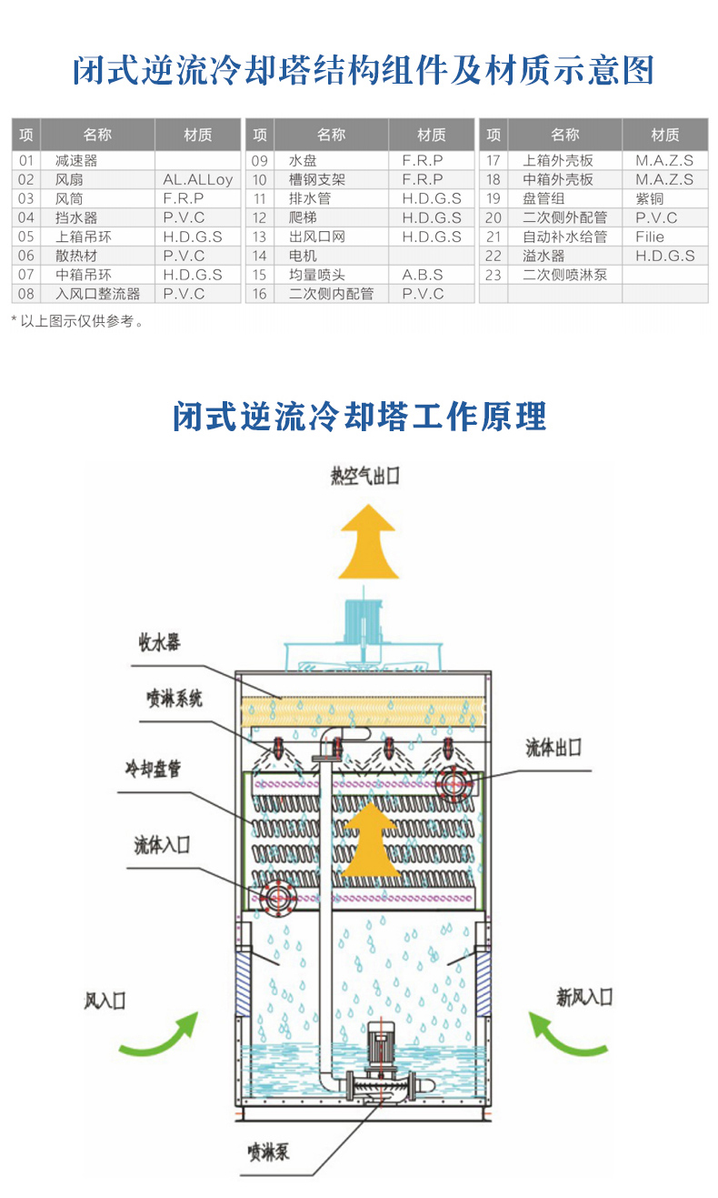 热水和空气流动方向 | 混流式冷却塔 | ||