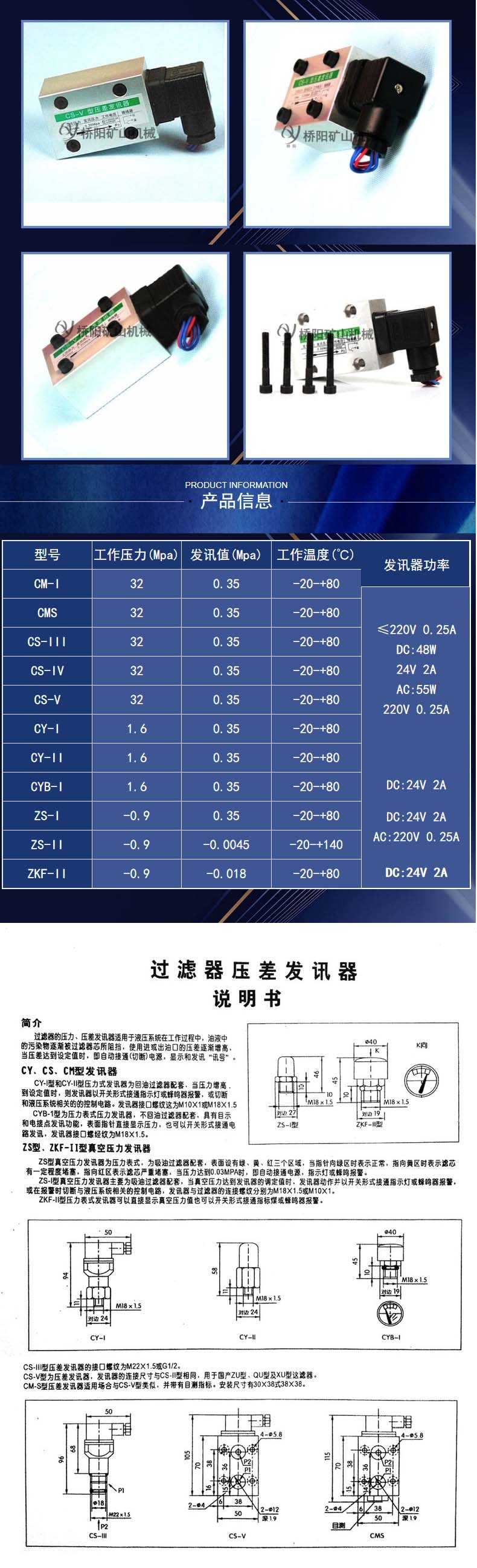 压差发讯器型号,主要有CMS,CS-V,CM-I,CS-IV,CZ-II,CS-III,CYB-I,ZKF-II,CY-II,YM-I,ZS-I,CM-I-F等。