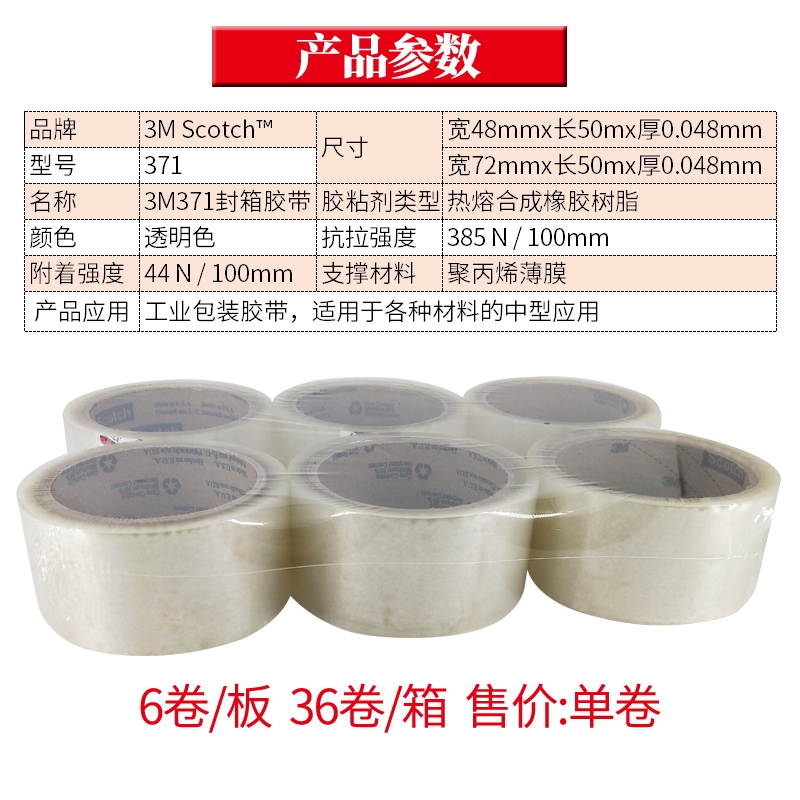 正品3m封箱胶带371耐磨重物打包胶带375强力高粘无痕透明胶布373