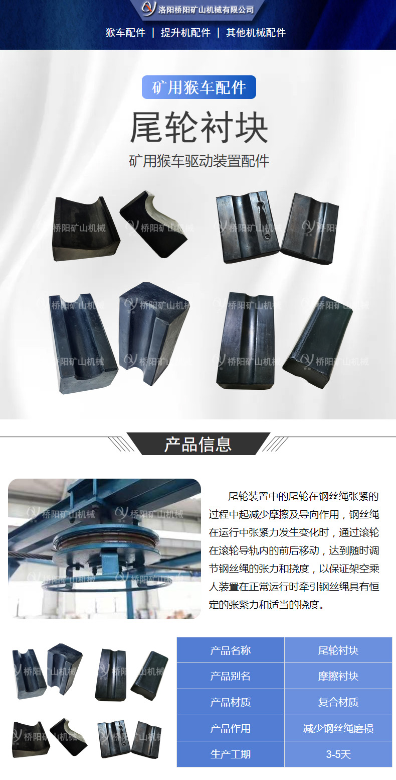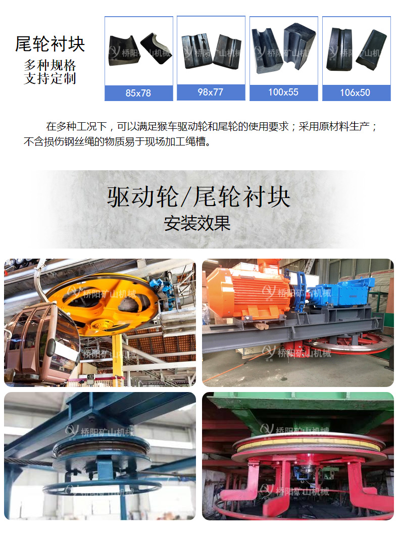 钢丝绳用尾轮衬块100x55x45 猴车驱动轮衬